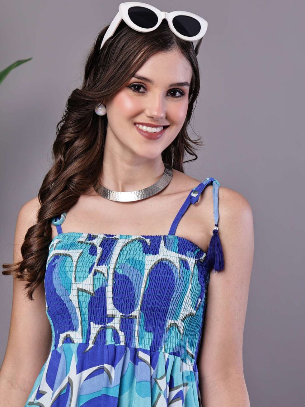 Effortlessly stylish dress with a vibrant abstract print, tie-up shoulder straps, and a chic high-low handkerchief hemline ? perfect for casual days or evening gatherings.